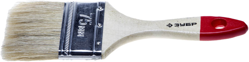 : Кисть флейцевая, универсальная, толщина 10-12 мм, светлая натуральная щетина, деревянная лакированная ручка.