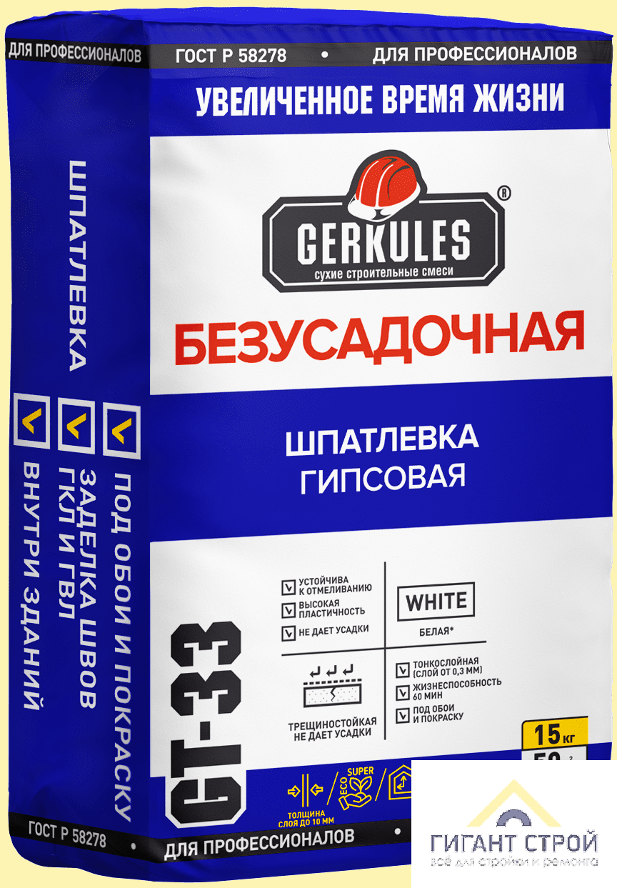 Шпаклевка Геркулес гипсовая Безусадочная 15кг GT-33 (72) *