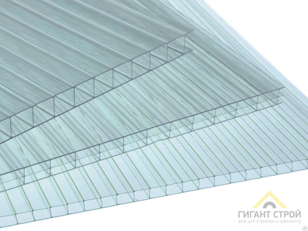 Сотовый поликарбонат 6мм (прозрачный) GOODPLAST 2,1*6,0м 0,86кг/м2 10.8кг (синий скотч)